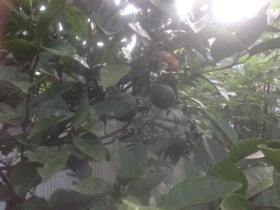 家の庭は、ややジャングル化。 高知特産のブシュカン家になってました。何にかけても美味しい。 ブシュカンの他に、蝉の抜け殻もくっついてました。