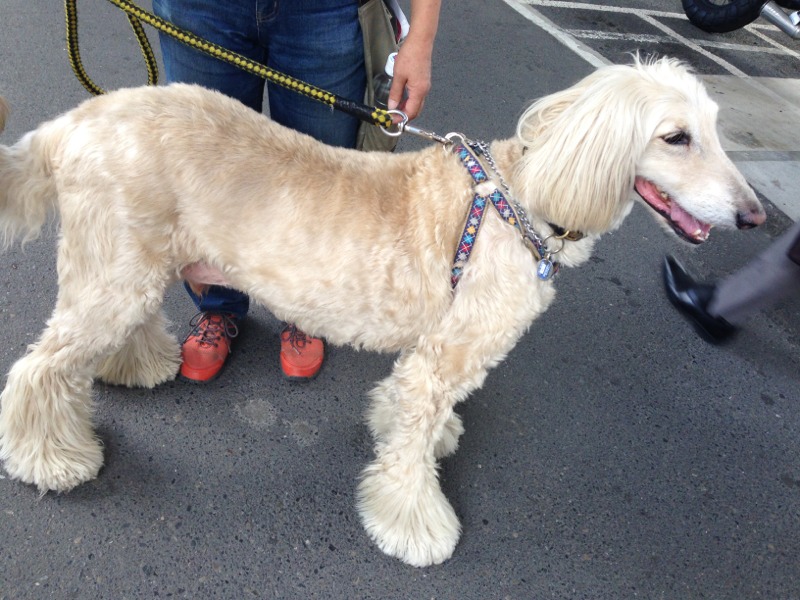 犬がいっぱいいますね。犬好きな私には嬉しいです。今日は仕事、主を頼ります。ちなみにこの犬はアフガンハウンド。アフガニスタンの猟犬で長い毛を夏向けにカットしたそうです。オシャレさん。エステル