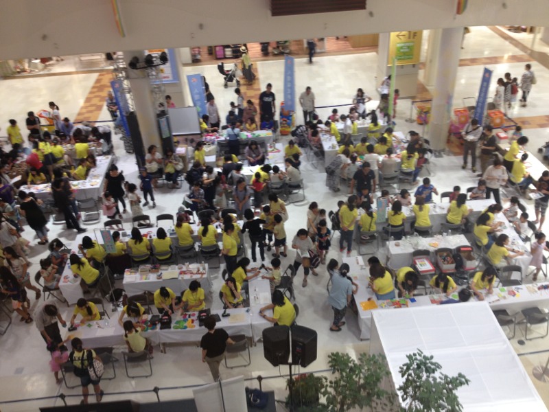 ショッピングモールで…。 黄色のTシャツの方たちは、自由課題のお助け隊の方たちでした。子ども達は、熱心に教えてもらっていましたが、それにも増してお母さんたちが真剣そのものでした。(笑) amagai