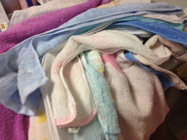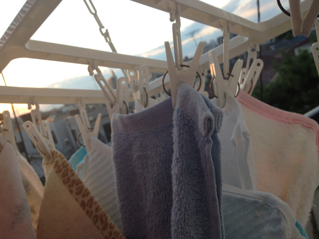 昨日の夕方のりこさんが乾してくれたタオル、取り入れる段になって気付きました。大量のタオルを工夫して乾してます。こんなにありました。さて何枚でしょうか?jk