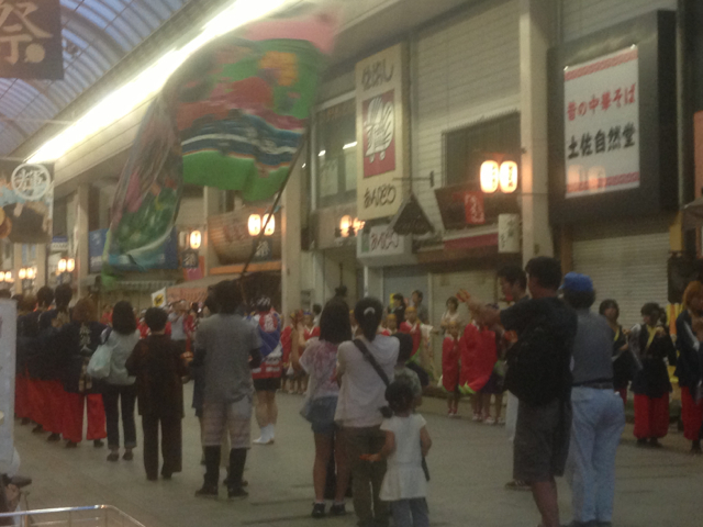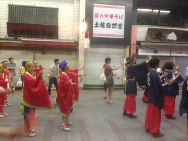 県外客向けに、よさこい踊りをしていました。昔の踊り方でした。 Naomi