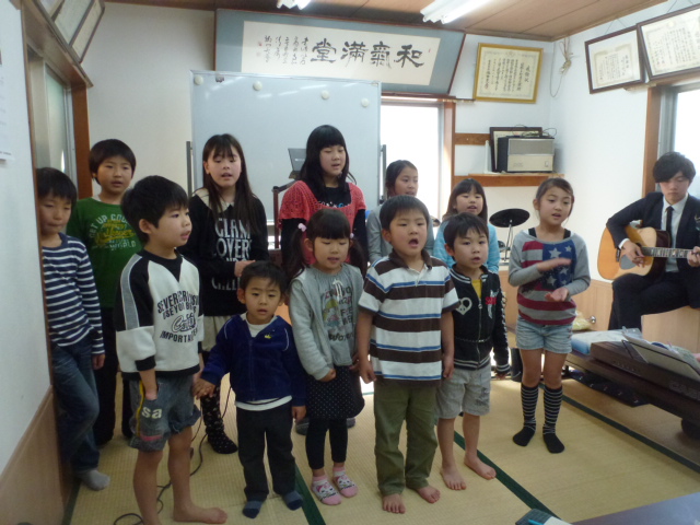 ちょっと前の写真ですが、CSチーム、みんなで 「J.E.S.U.S」を賛美している所です。 みんな、キリッ!とした表情で、気合いが入っています。。。(?!)