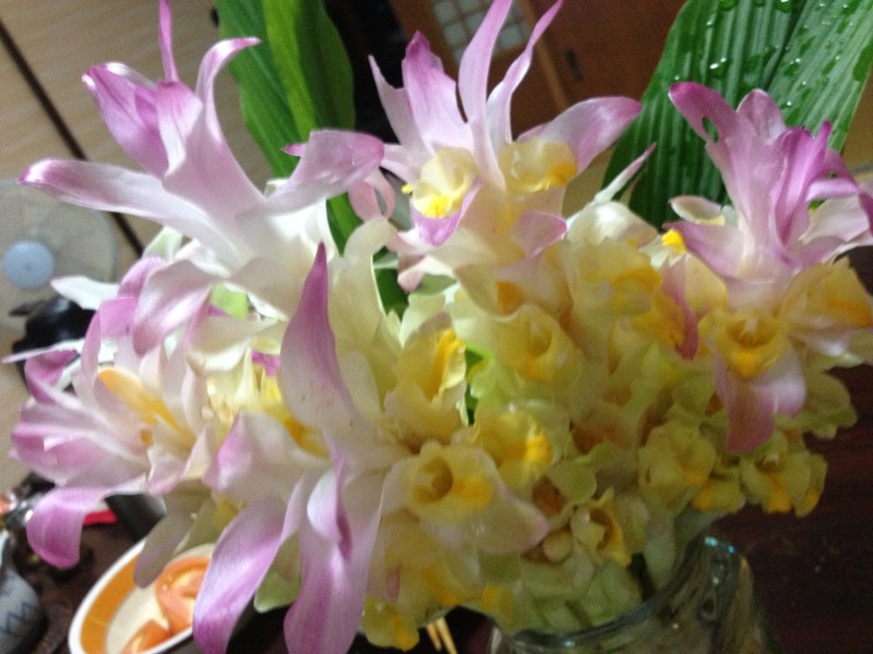 今近所のおばちゃんが、持って来てくれた花。 こんな綺麗な花見たことないなあ〜 と聞いたら ウコンの花だそうです! Kayano