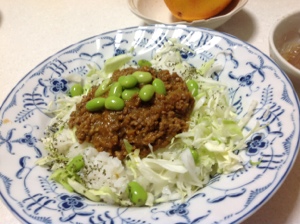 ウコンを使った、枝豆入りスパイシー・キーマーカレーとなしました。辛口です。(≧∇≦)ph