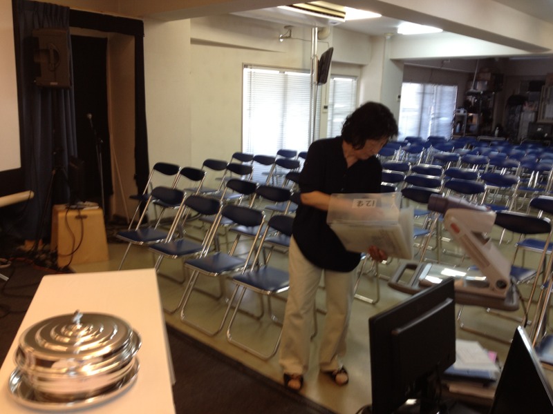 夏休みで高知に帰省中の高橋牧師に替わり、イスラエル堀内伝道師が、礼拝の準備をしながら、スタッフを待っています。