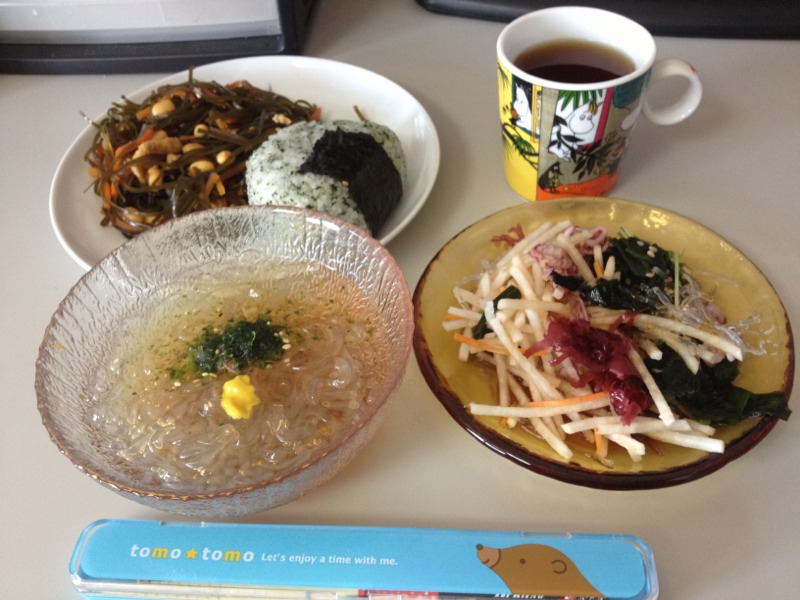 遅くなりましたが、今日のランチです。大好きな切り昆布の煮物。そして「ところてん」です!ちなみに…ご存知三杯酢です。(笑) amagai