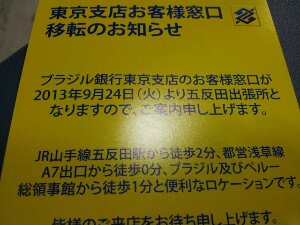 9/24からブラジル銀行の東京支店が、孤児院事務局のある五反田に移転するそうです!\(^o^)/ 有楽町まで来なくてもよくなりますね。 (^^)♪Masako Y.