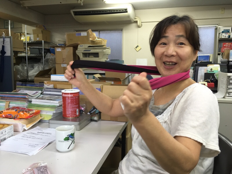 いづみさん、元気です。 首に巻いているのは、水に濡らして首を冷やすのに使う暑さ対策グッズです。 kato