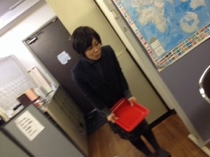 隣りから音がすると思ったら、神学校事務所にも山中さん来ておられます。