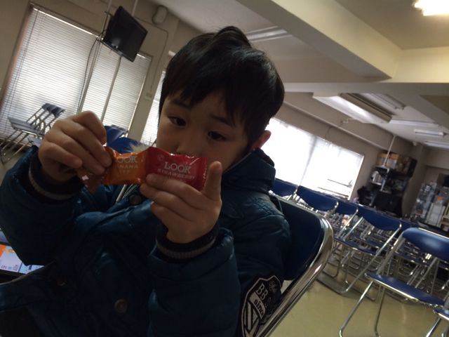 ダビデ君がお母さんにくっついて来ていましたので、チョコレートをあげました! 萱野