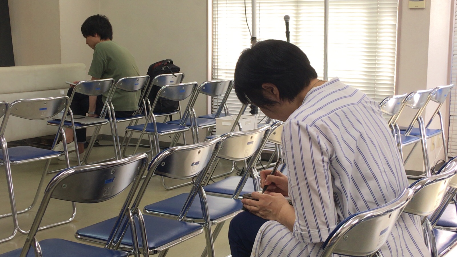 メモを取っている おおのさん _φ( ̄ー ̄ )