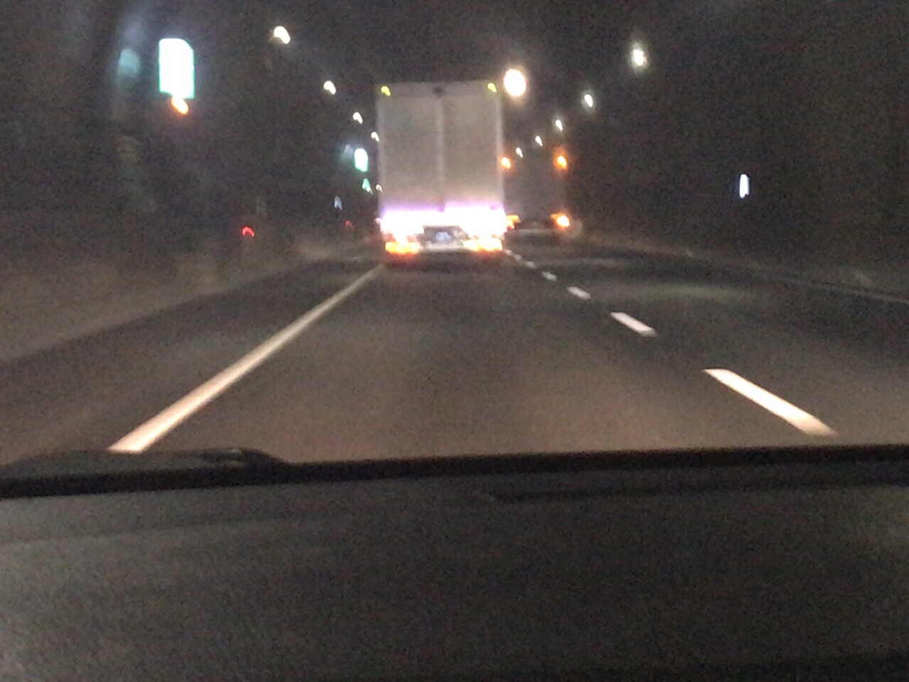 アストン事務所の帰り… 五反田から首都高のトンネルに入りました。ミスト?が出ています。ライトに照らし出されてちょっと涼しそう〜?!