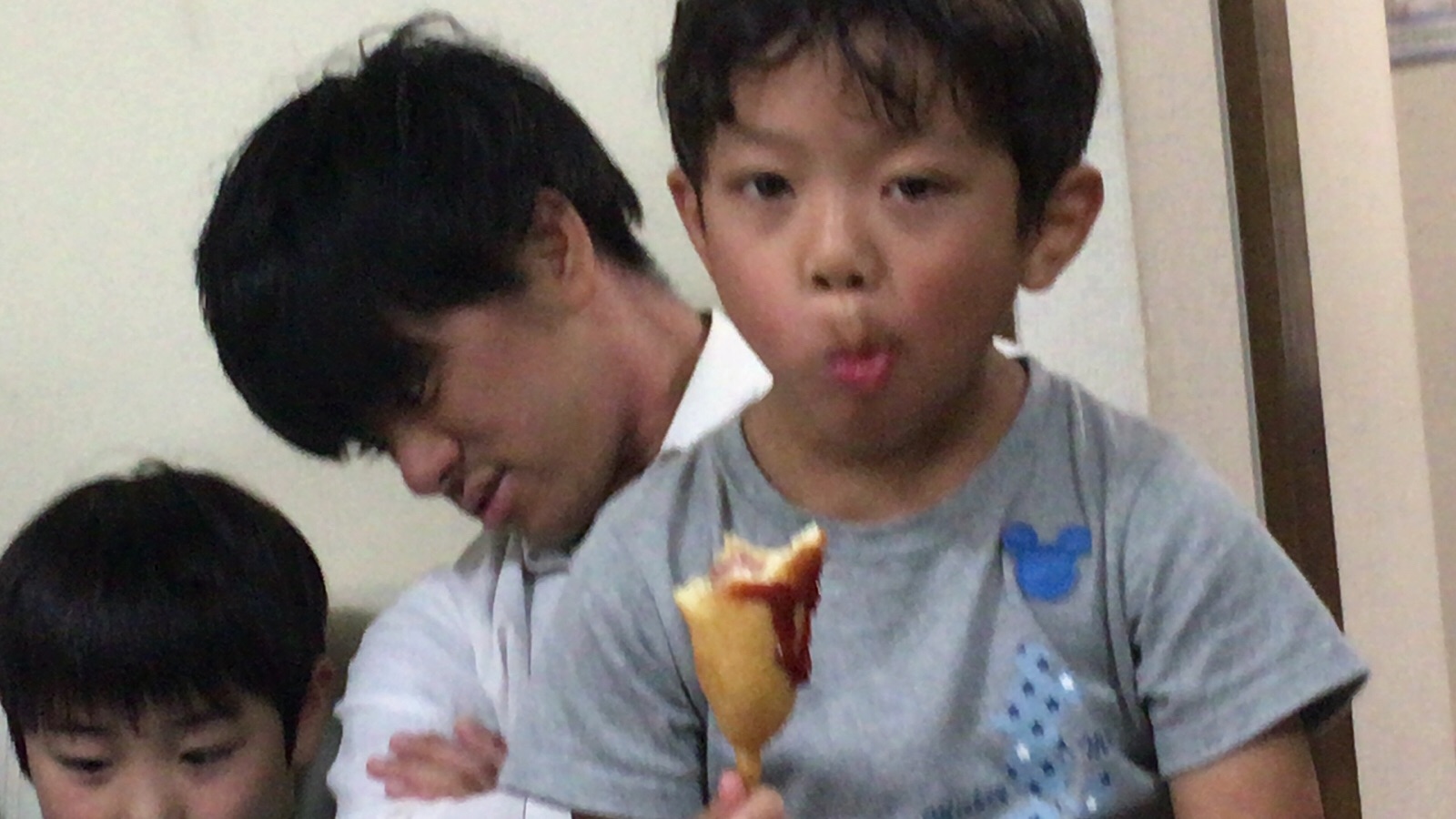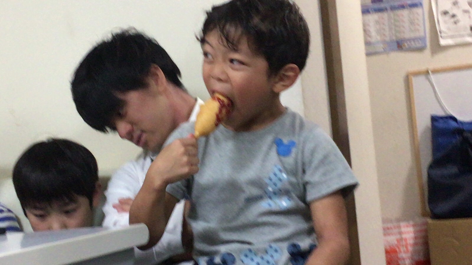 よっちゃんも アメリカンドッグ モグモグ(*^◯^*)