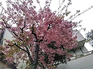 桜の一種でしょうか。 雨上がりの中、きれいに咲いていました。