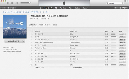 2013年、新たにやすらぎの歌12集のベストセレクションも「iTunes store」で購入できることになりました。