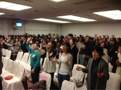 長崎にいる天谷牧師にもアドバイスを受け、遂にスクリーンに聖会の様子が。