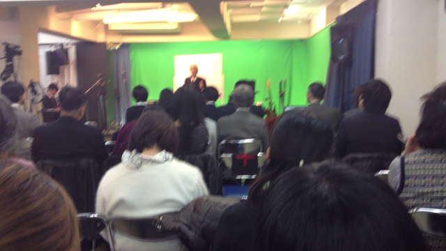 新井先生、東京アンテオケ教会の会堂に初めて来た時、ビックリしました、と。会堂がL(エル)字で、こっちを見ると、こっちが見えない。