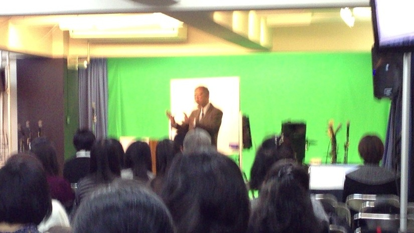 感謝会の準備スタッフの長のイスラエル榊牧師もいる、ラ・スポーザ。美しい歌声です。