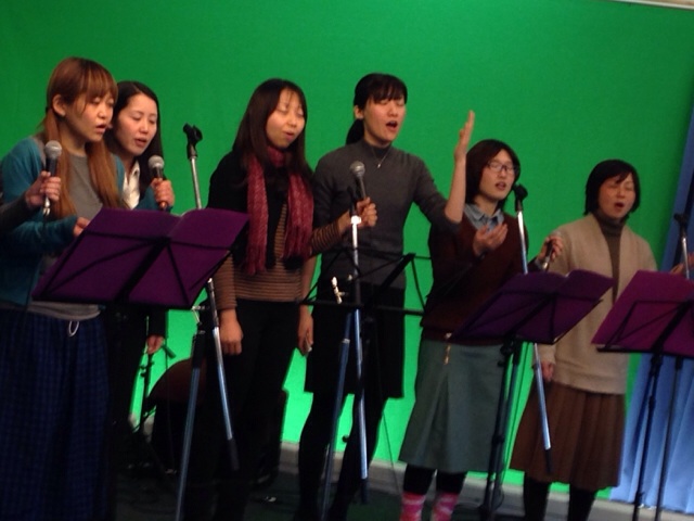 インターナショナル礼拝のメンバーで英語での賛美です。 小代さんも賛美していました。 東京