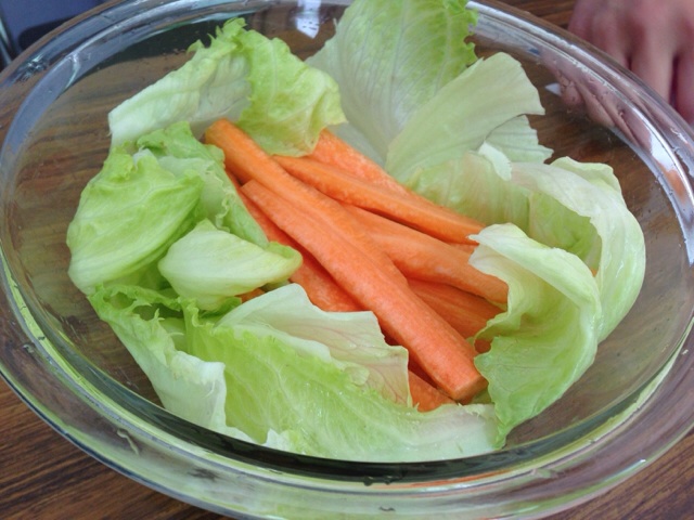 完成!切っただけ。 サラダできたよーと叫んでいます。