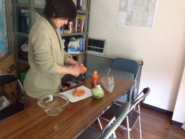 料理はじめました! あ〜人参人参〜と歌ってる元気なおじろさん。