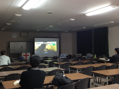 室内を暗くして、皆さん真剣な表情でザンビアの孤児院の映像を観てる様子です。