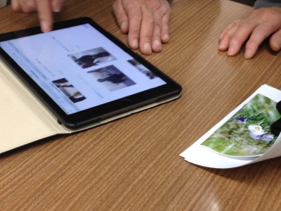 iPad での写真、きれいです。お母様の手には、「私はいやされた4」の小冊子が。