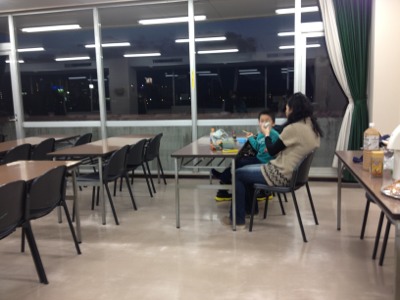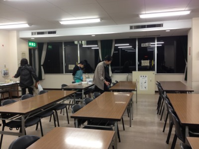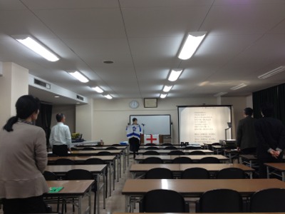 聖会5分前。まだまだ雪道の中、聖会に人々が来られています。