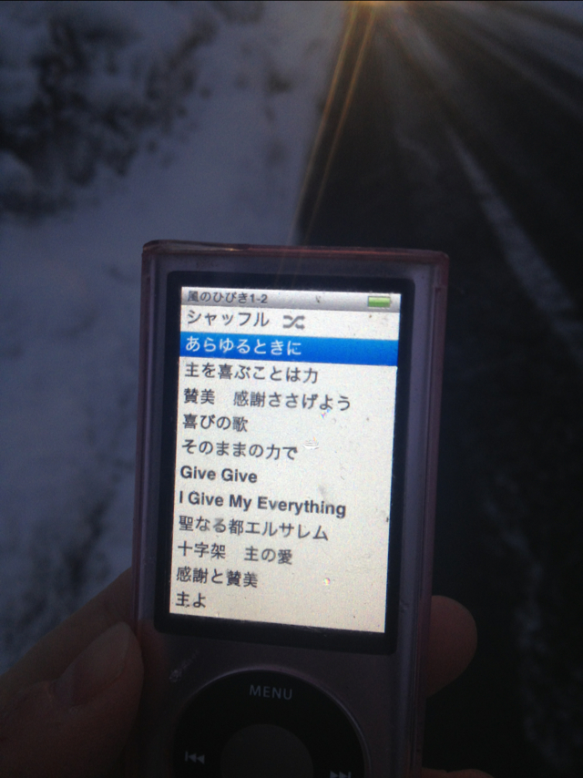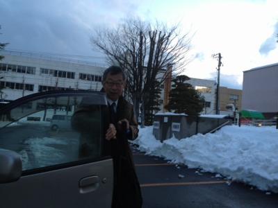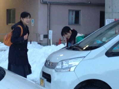まだ積もっている雪中から、ヨセフ菱沼牧師と、みゆきちゃんが、聖会荷物を運んでいました。