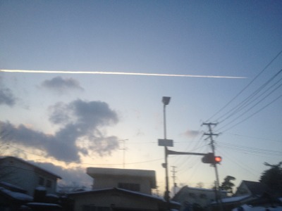 ひこうき雲です。映画の「風立ちぬ」を思い出しました。