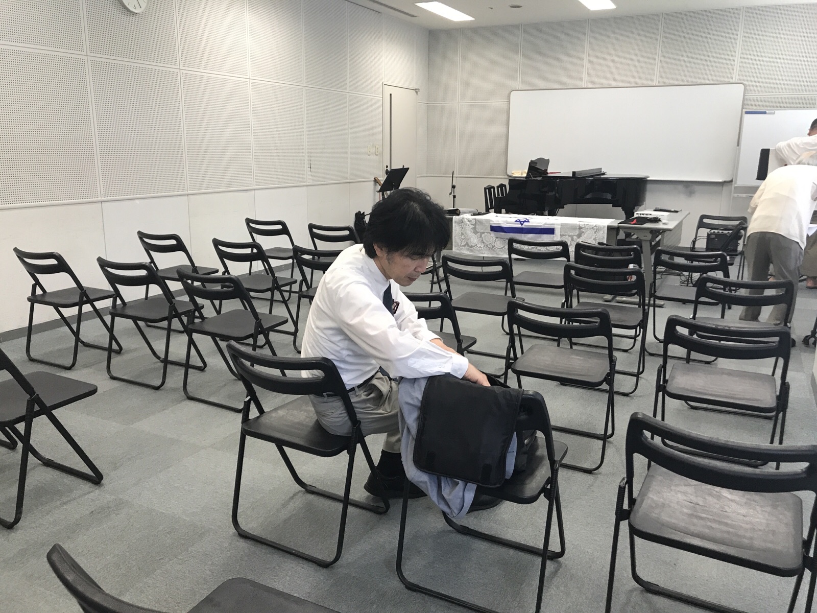 もうすぐ聖会です。ワクワクしながら会場のセッティングしています。 東フィラデルフィヤ シオン