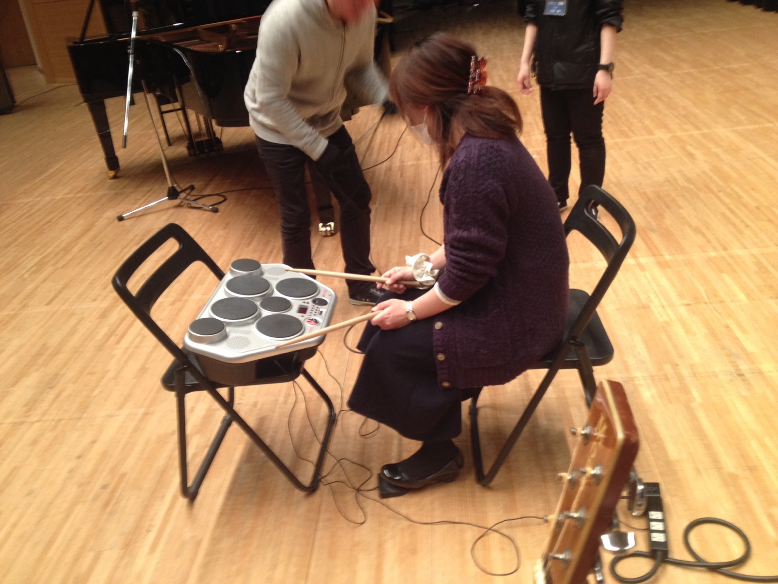 みゆきさんが電子ドラムの調整をしています。 東フィラデルフィヤ シオン