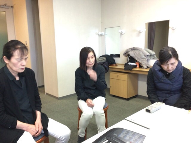 楽屋をお借りして、お祈りから始めます。 福島教会 みゆき