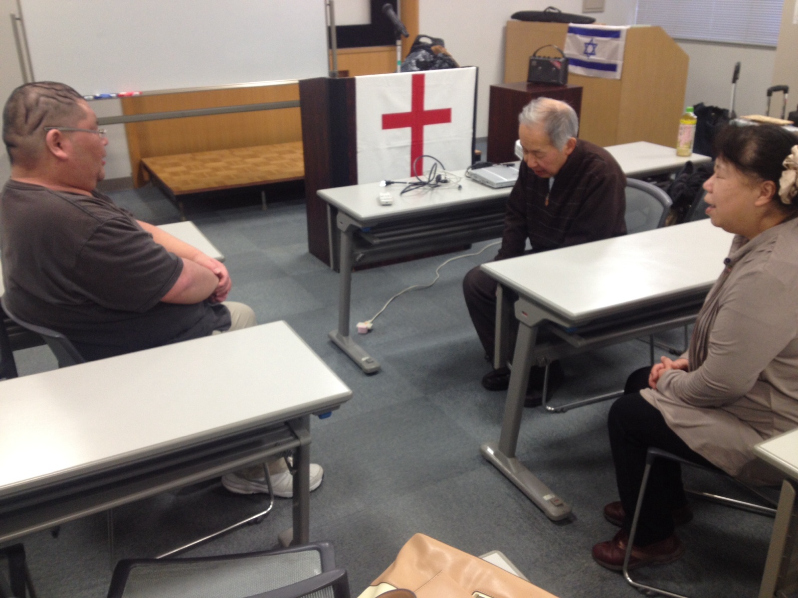 聖会会場で今日の聖会のためにお祈りしてます。 東フィラデルフィヤ シオン