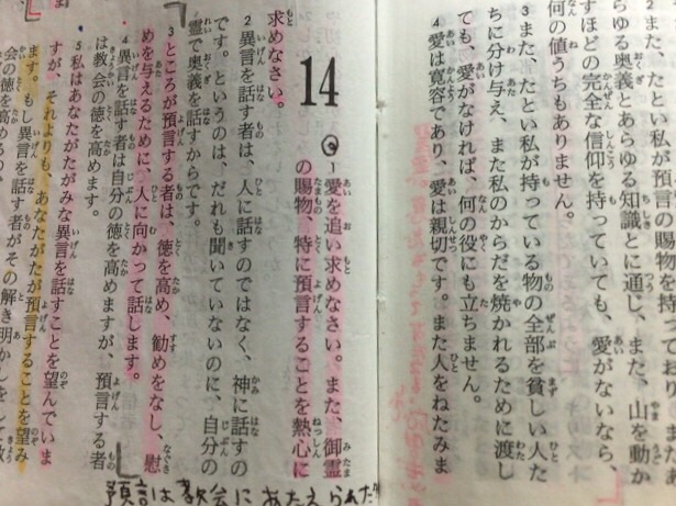 聖書箇所は第一コリント 14章1節から。