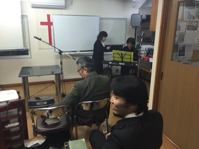 ちょっと時間があるので、賛美大会の練習をする方々も…