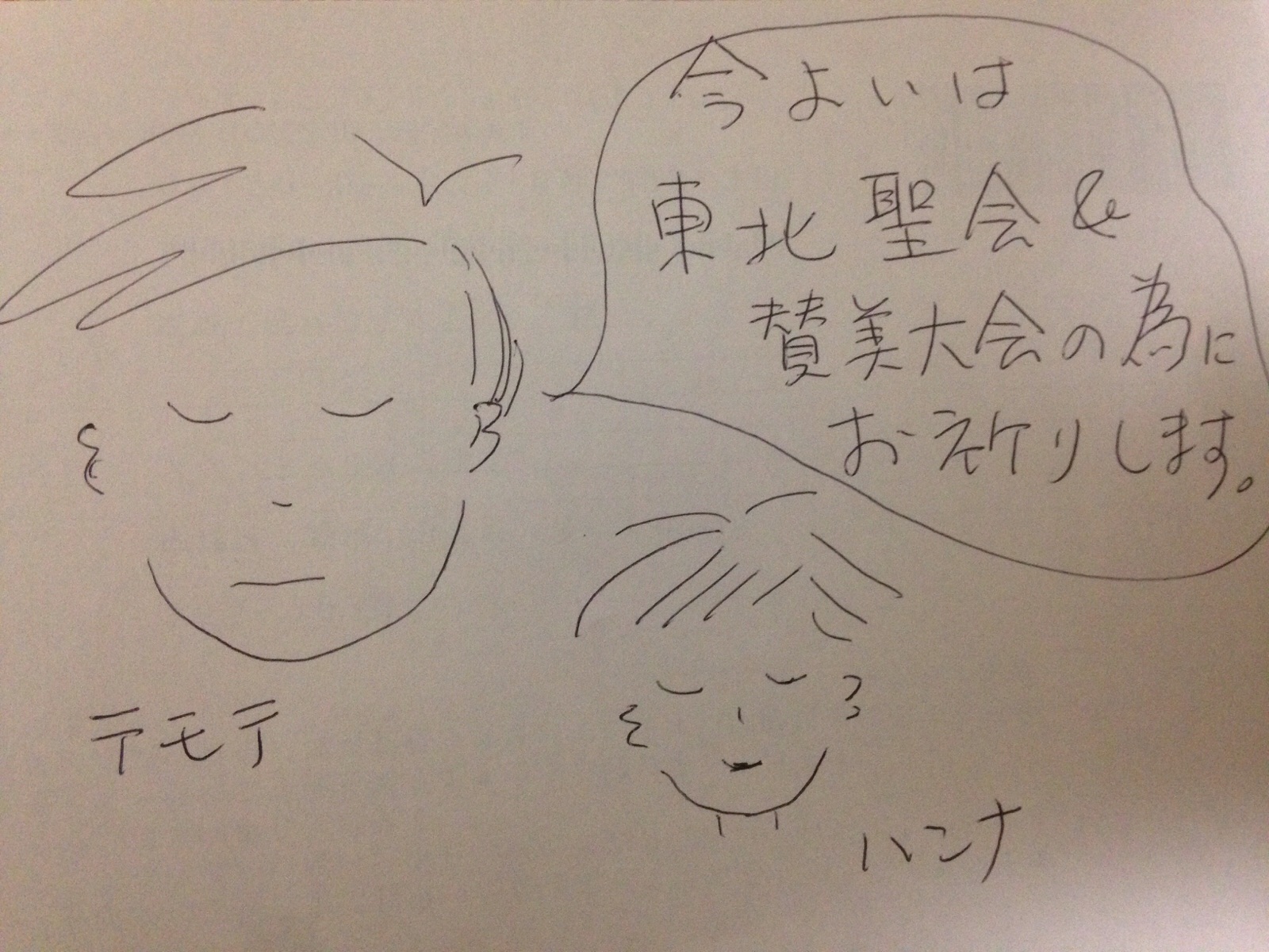 昨日、息子が夢を見たそうです。 賛美大会で歌ってたら途中でカラオケがとまってしまったそうです。 東フィラデルフィヤ シオン