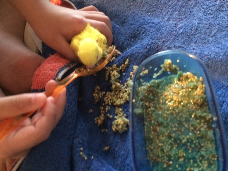 ヒナちゃんのお湯割り完成!!3時間おきに与えねば! ハルぼん
