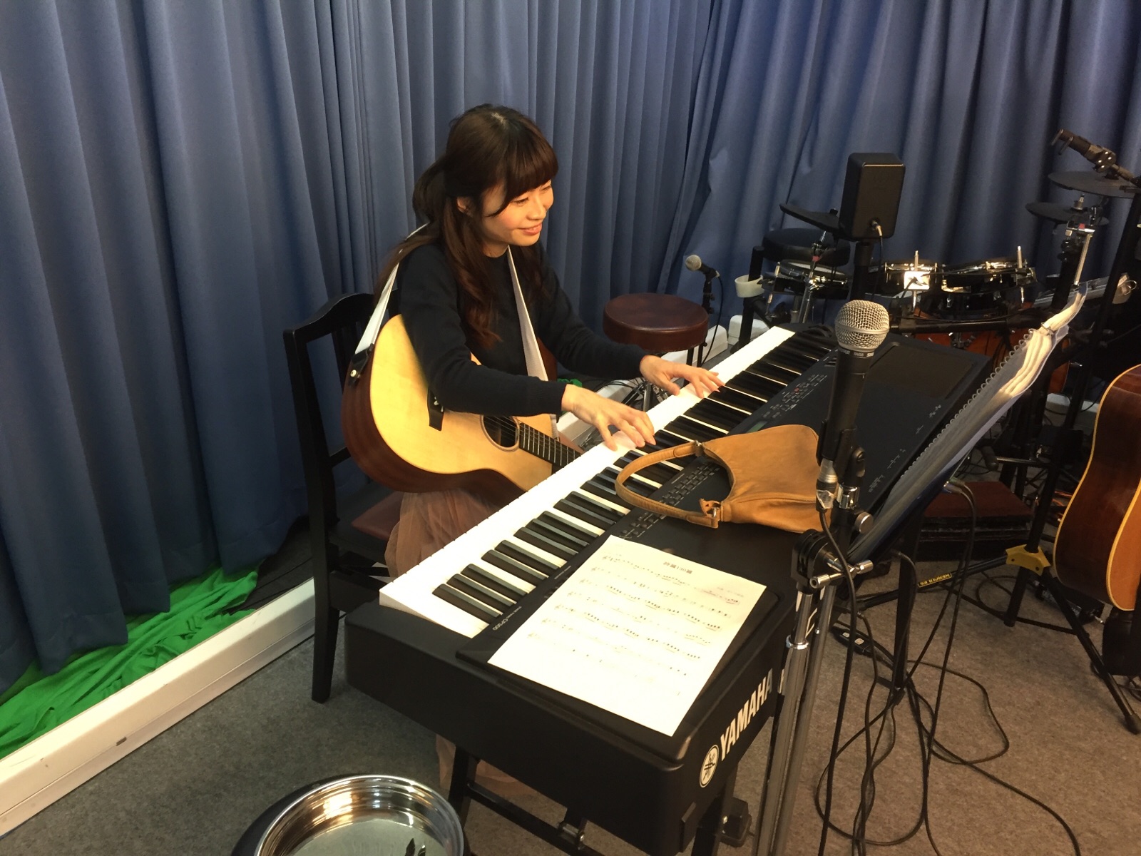 すごい器用にピアノを弾くまみちゃん。ギターじゃまじゃないかい? Yui