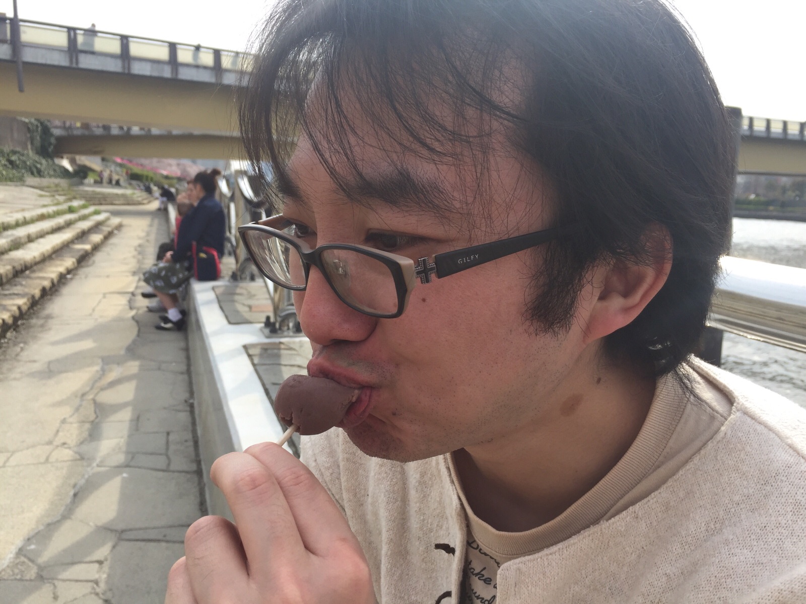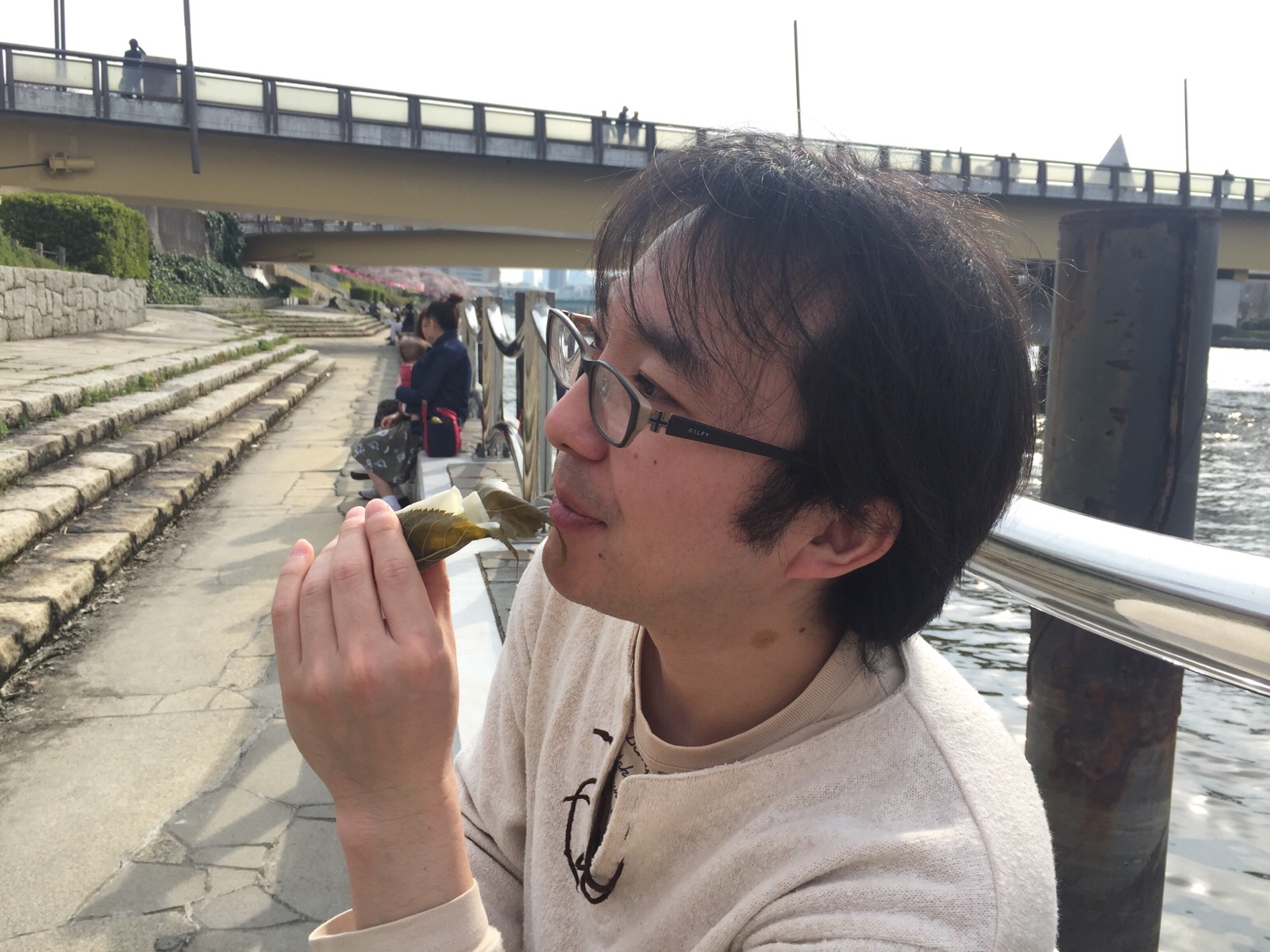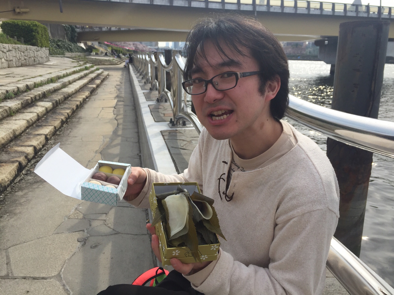 隅田川の桜を観ながら、桜餅と団子をおいしくいただきま〜す。masukawa