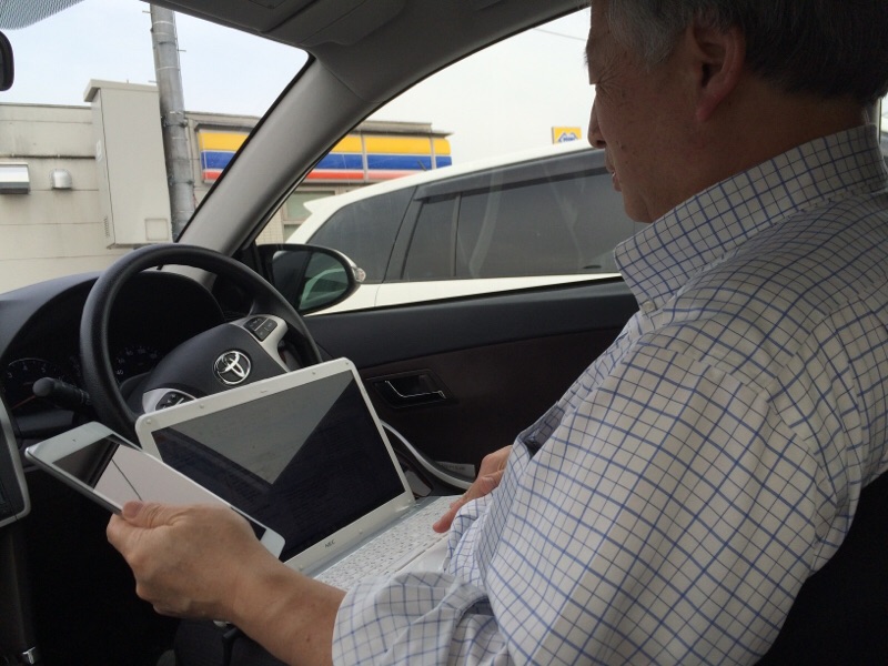 メールが届いたので…コンビニの駐車場で仕事中…! amagai