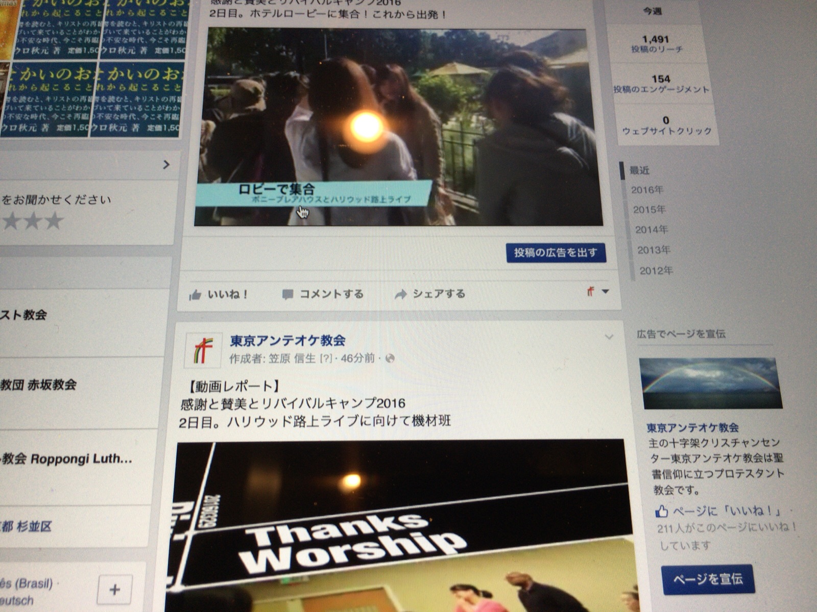 アンテオケのフェイスブックには感謝と賛美とリバイバルキャンプの現地からの動画レポート、20秒くらいの動画ををたくさんアップしています!https://www.facebook.com/tokyoantioch/