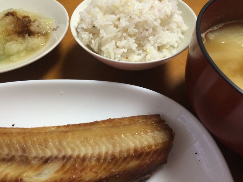 今日は、焼き魚でホッケに… ! 冷蔵庫にある物で…雑穀米にしました〜♪ amagai