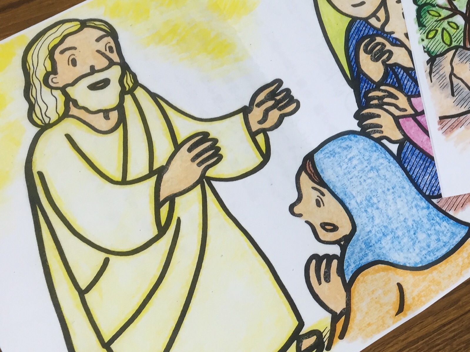 教会学校幼児クラス担当の山中さんに、テキスト渡しました。 だんだん紙芝居のぬりえが、力作になってます。Joy.m