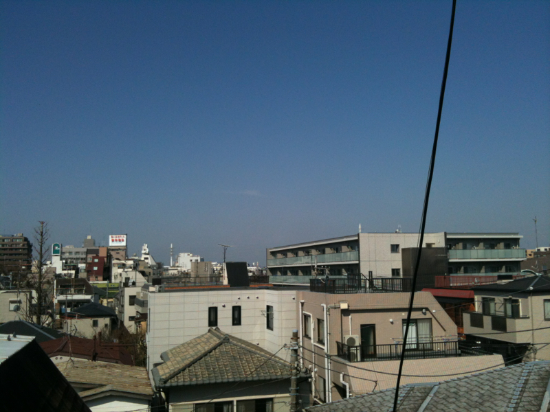 教会事務所の窓から。 高円寺の空は晴れ渡っていますが、遠くは少し霞がかっています。 kato