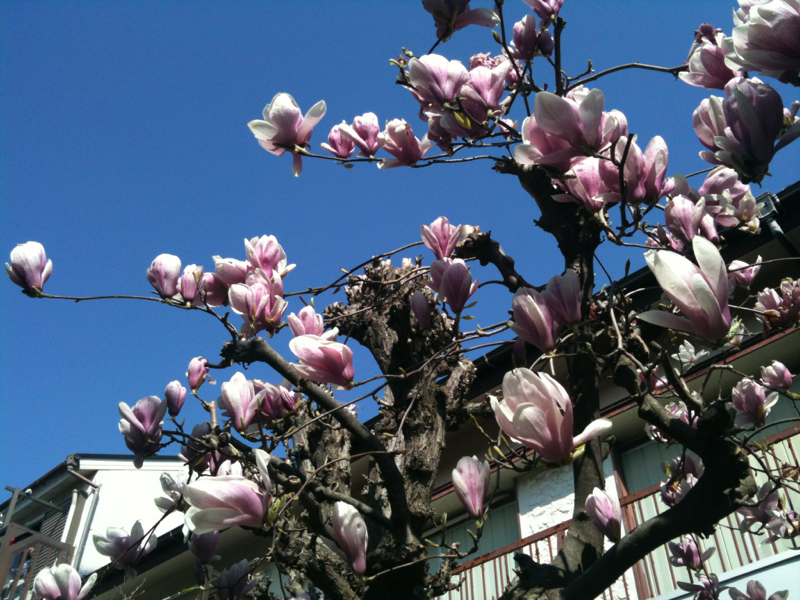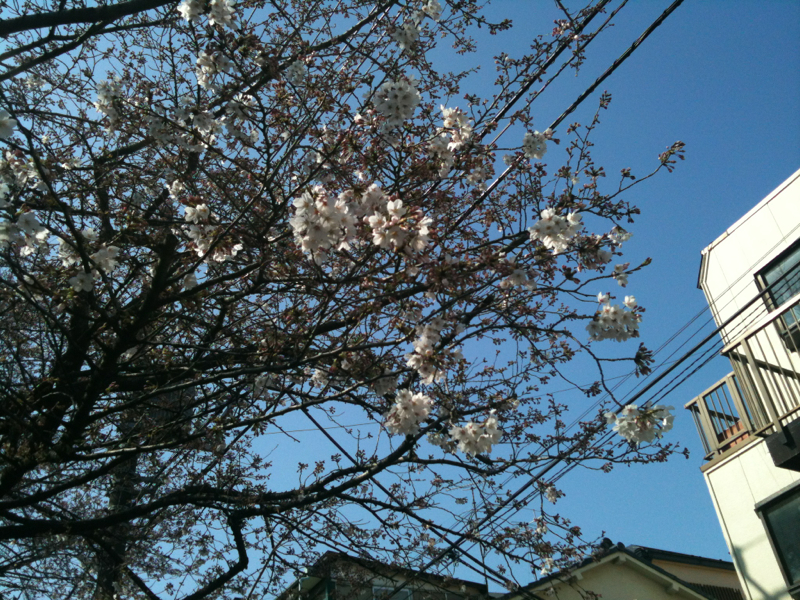 アパートの大家さんによると夕べは雹も降ったそうです。 今日は暖かくて桜がさらに開くでしょう。 kato