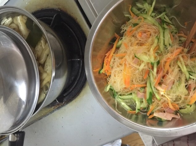揚げの味噌汁と、春雨中華サラダも作って、夕飯の準備万端かな♪