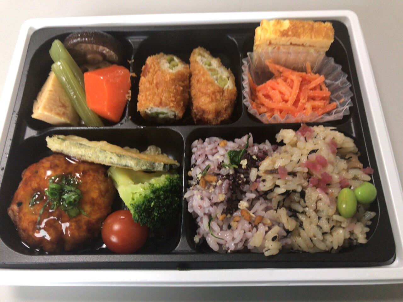 おかず満載雑穀弁当をスーパーで… 一度に様々な味か楽しめますーっとあったので…!美味しい〜(^^) それと…