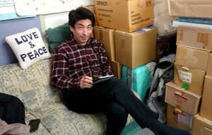 先程、NRO礎の石孤児院・東京オフィスにて。iPadで作業をする真栄城さん。 Megumi