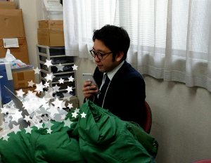先程、NPO礎の石孤児院・東京オフィスにて、iPadと iPhoneを駆使して、真剣に作業をしていた、ヨハネくん☆ Megumi